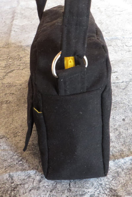 Aber egal, ob man jetzt einen festen Oberstoff wie Kunstleder hat oder leichtere Stoffe verstärkt - das macht es schon knifflig, den Seitenstreifen vernünftig an den Kurven festzunähen, vor allem an den Ecken, wo das Reißverschlussende liegt. Es wird auch immer schwieriger, je mehr Teile schon festgenäht sind, weil irgendwann immer sperrige Taschenteile im Weg liegen ...